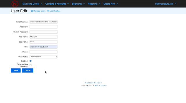 - The Net-Results users that are created from the integration are created with a “Sales” profile – the profile with the most limited access to Net-Results features.